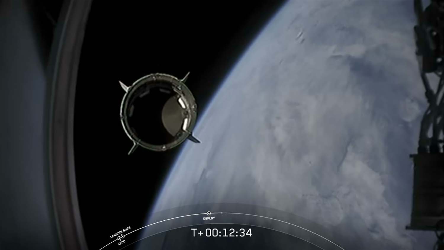 La primera etapa del cohete aterrizó de regreso en el buque automático de recuperación poco más de 10 minutos después del lanzamiento, y dos minutos después la cápsula Dragon se separó de la segunda etapa del cohete y comenzó su vuelo autónomo hacia la ISS. La segunda etapa no es recuperable y se consume tras el reingreso atmosférico.